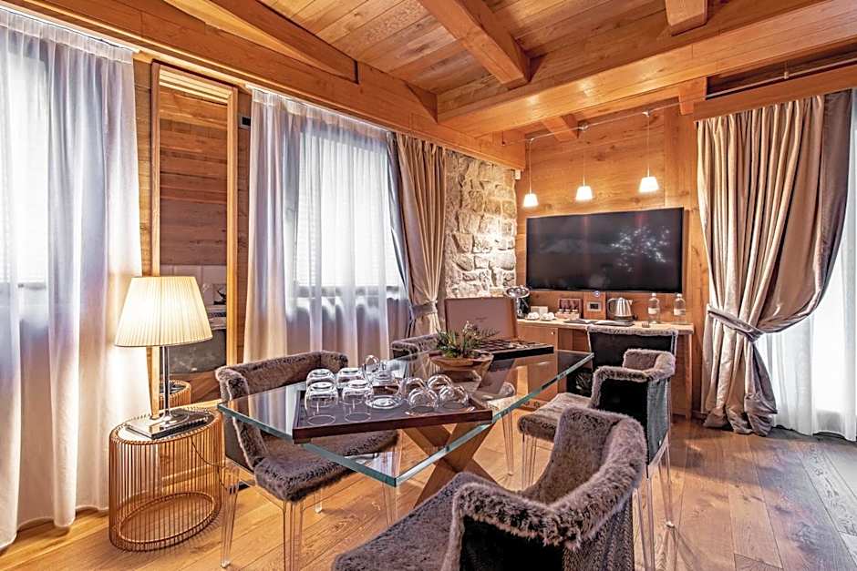 Guest experience features ski on-site and ski rental, spa and wellness packages, free WiFi, and a free fitness center. Private parking, shuttle service, and private entrances are available for an extra charge. Wellness options include Turkish/Steam Bath and sauna (both extra charges) and spa services. Live music is offered for free, and a bar awaits for après-ski moments. Rooms with terrace, balcony, mountain views, soundproofing, and non-smoking options round out the alpine setting.